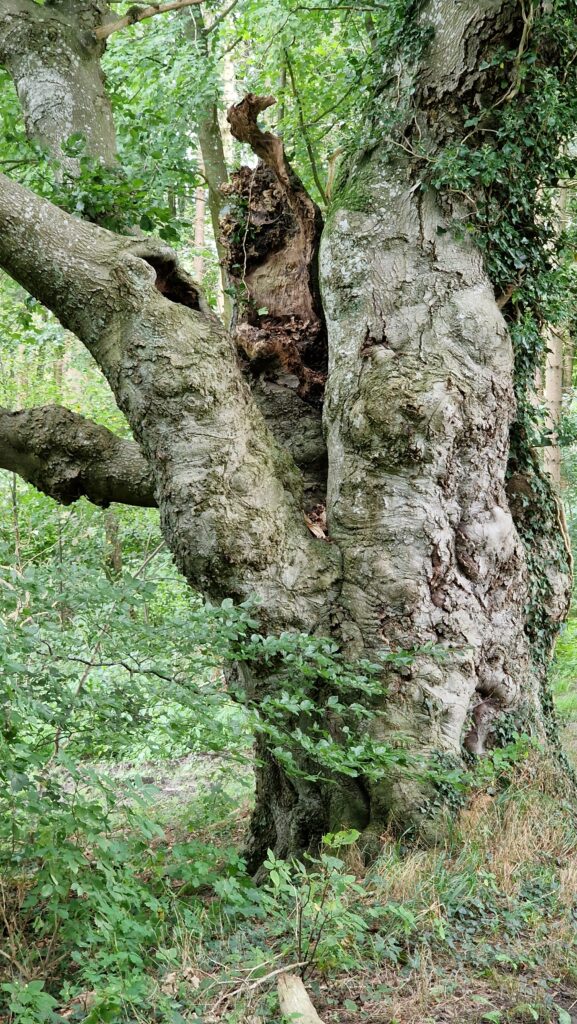 Bevor wir uns der Ostseite des Parks zuwenden, weidet das Auge sich gern an der Gruppirung, an den Vorsprüngen dunkler Tinten der Blutbuchen, und erfreut sich des stattlichen Wuchses der Pyramiden-Eichen. Die Obstbäume, welche hie und da im Rasen vertheilt stehen, sind eine schöne Zierde und sowohl in der Blüthe, als mit ihren Früchten höchst angenehme Erscheinungen.