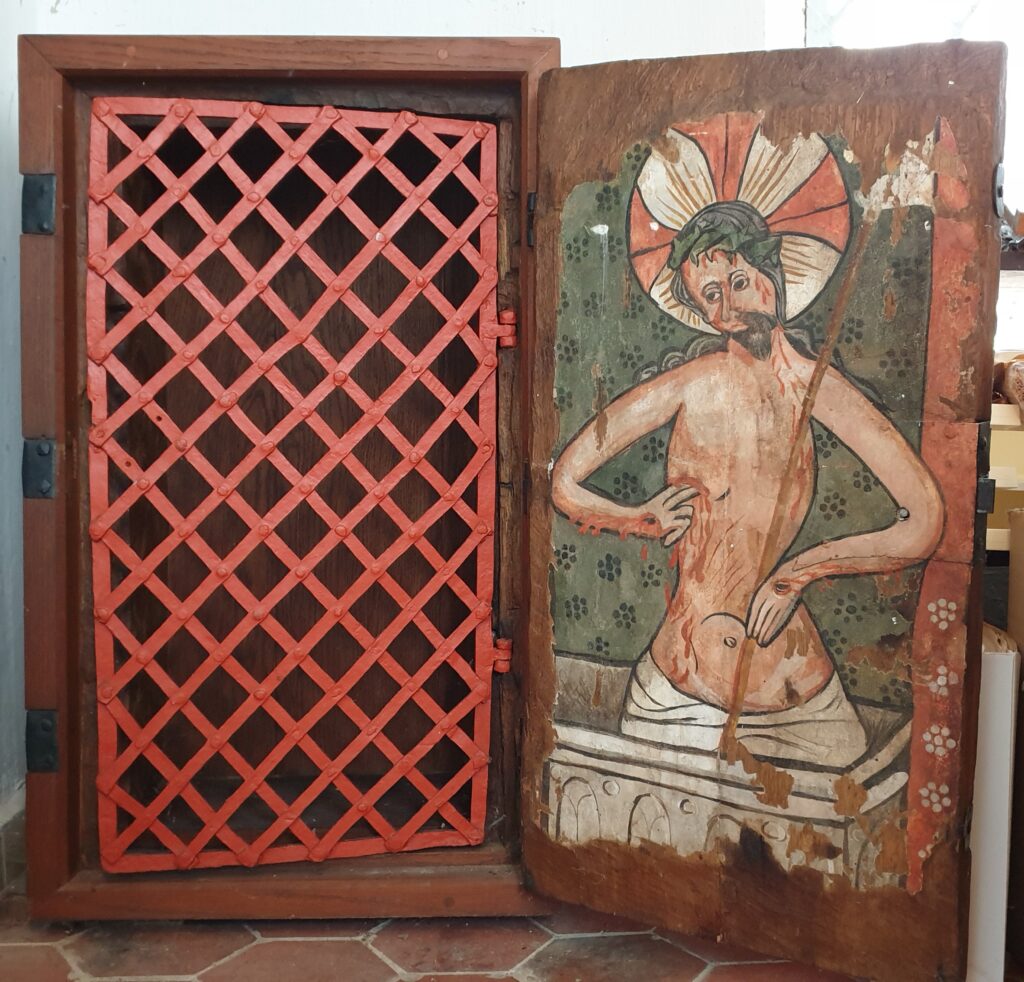 In der Kirche befand sich auch ein in die Wand eingelassener Altarschrein mit einem mittelalterlichen Christus auf der Innentür, den Pastor Barsch ebenfalls in Stralsund von dem Restaurator Todemann aufarbeiten ließ. Nach der Fertigstellung wurde der Schrein nicht wieder in die Wand eingesetzt.